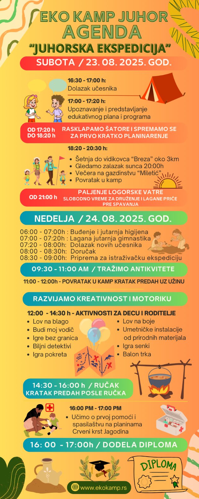 Tokom 23. i 24. avgusta 2025. godine održana je radionica „Juhorska ekspedicija“, dvodnevna avantura koja je spojila istoriju, prirodu, selo i porodično zajedništvo. Program je bio pažljivo osmišljen tako da deci omogući da istražuju, dodiruju i dožive prošlost – ne kroz knjigu, već kroz stvarno iskustvo.
